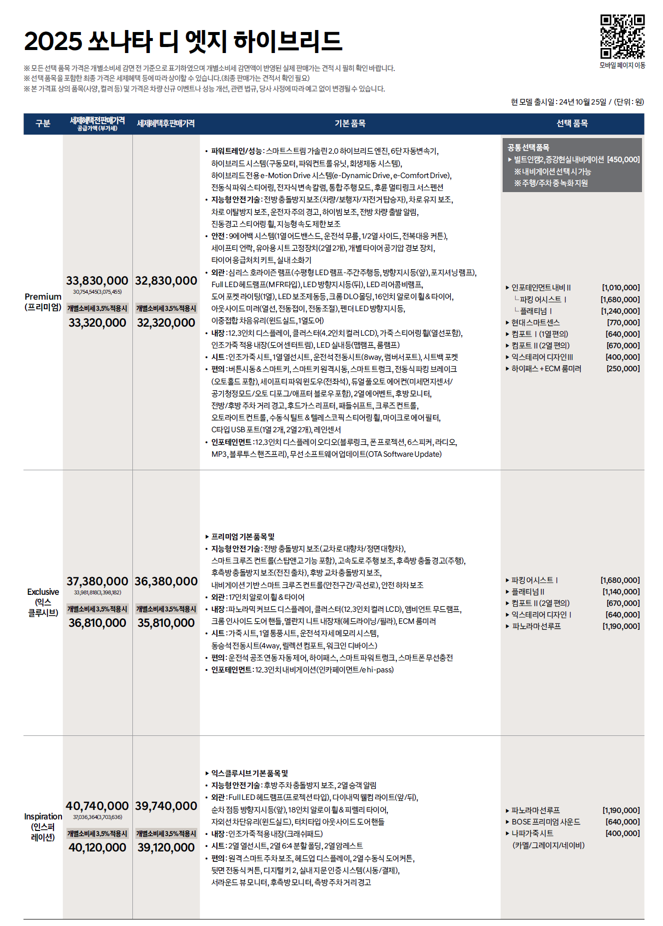 가격표(PDF) - 소나타 디엣지 하이브리드